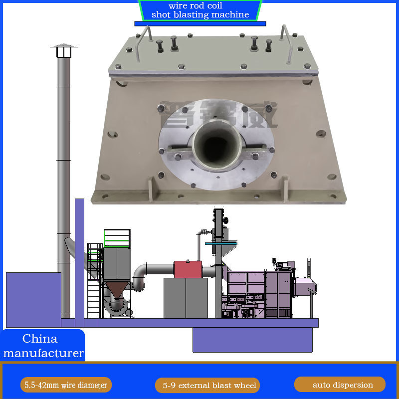 L'apparecchiatura è dotata di 6 serie di teste della rotaia in base alle caratteristiche della canna di filo,che è installato sul retro/lato della camera di blasting per liberare il filo con 60-90secs velocità di fusione,.Utilizzando un sistema di trasmissione orizzontale a vite, un sollevamento a cintura ad alta resistenza, un sistema di separazione dei residui di scatole in acciaio,sistema di depurazione in due fasi (inerzia + filtro) e sistema di controllo elettrico HMI (automatico + manuale), fa il pezzo di lavoro soddisfa efficienza colpo di esplosione requisiti.